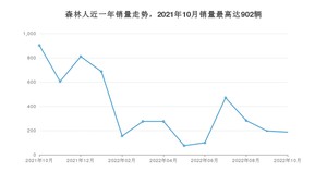 2022年10月,森林人销量为186辆,同比下降79.38%,环比下降5.1%。2021年10月-2022年10月份,森林人销量为5014辆,同比下降65.4%。