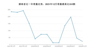 2022年10月,撼路者销量为22辆,同比下降90.64%,环比下降52.17%。2021年10月-2022年10月份,撼路者销量为1473辆,同比下降49.1%。
