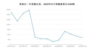 2022年10月,智跑销量为682辆,同比下降78.61%,环比下降18.62%。2021年10月-2022年10月份,智跑销量为18646辆,同比下降68.08%。