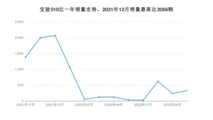 2022年10月,宝骏510销量为330辆,同比下降76.12%,环比增长43.48%。2021年10月-2022年10月份,宝骏510销量为8029辆,同比下降84.03%。