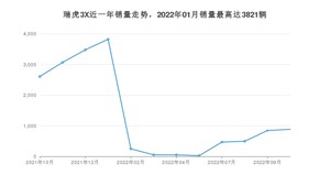 2022年10月,瑞虎3X销量为885辆,同比下降66.04%,环比增长4.86%。2021年10月-2022年10月份,瑞虎3X销量为16034辆,同比下降42.37%。