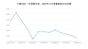 2022年10月,小鹏G3销量为544辆,同比下降85.57%,环比下降46.46%。2021年10月-2022年10月份,小鹏G3销量为27276辆,同比增长13.39%。