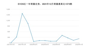 2022年10月,EVOS销量为229辆,同比增长22%,环比增长68.38%。2021年10月-2022年10月份,EVOS销量为4468辆,同比增长148%。