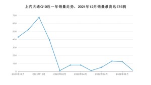 2022年10月,上汽大通品牌总体销量达到805辆,其中上汽大通G10销量达到14辆,占品牌总销量的1.74%。