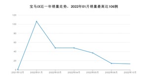 2022年10月,宝马iX销量为13辆,2021年10月-2022年10月份,宝马iX销量为267辆,
