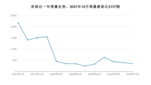 2022年10月,奕跑销量为344辆,同比下降84.05%,环比下降14%。2021年10月-2022年10月份,奕跑销量为10149辆,同比下降56.88%。