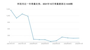 2022年10月,柯珞克销量为181辆,同比下降87.5%,环比增长4.02%。2021年10月-2022年10月份,柯珞克销量为6194辆,同比下降75.17%。