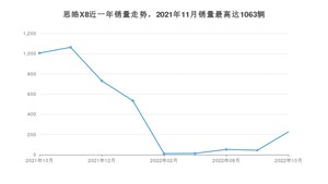 2022年10月,思皓X8销量为227辆,同比下降77.44%,环比增长415.91%。2021年10月-2022年10月份,思皓X8销量为3681辆,同比下降75.97%。