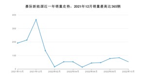 2022年10月,嘉际新能源销量为53辆,同比下降72.4%,环比下降36.14%。2021年10月-2022年10月份,嘉际新能源销量为1347辆,同比下降58.83%。