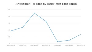 2022年10月,上汽大通D60销量为68辆,同比下降27.66%,环比增长161.54%。2021年10月-2022年10月份,上汽大通D60销量为708辆,同比下降65.58%。