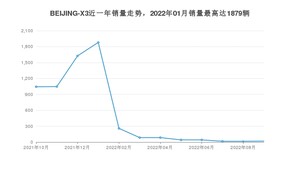 2022年10月,BEIJING-X3销量为19辆,同比下降98.18%,2021年10月-2022年10月份,BEIJING-X3销量为6160辆,同比下降60.27%。