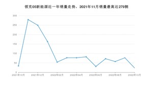 2022年10月,领克05新能源销量为23辆,同比下降32.35%,环比下降70.13%。2021年10月-2022年10月份,领克05新能源销量为1275辆,同比增长267.44%。