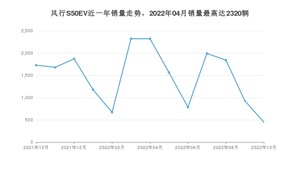 2022年10月,风行S50EV销量为448辆,同比下降74.06%,环比下降51.67%。2021年10月-2022年10月份,风行S50EV销量为19314辆,同比增长1%。