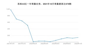 2022年10月,思皓A5销量为138辆,同比下降85.89%,环比增长16.95%。2021年10月-2022年10月份,思皓A5销量为3441辆,同比下降69.8%。