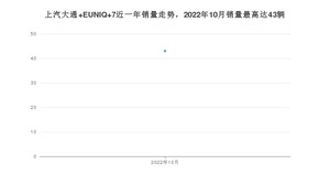 2022年10月,上汽大通 EUNIQ 7销量为43辆,2021年10月-2022年10月份,上汽大通 EUNIQ 7销量为43辆,