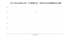 2022年10月,上汽大通 EUNIQ 6销量为42辆,2021年10月-2022年10月份,上汽大通 EUNIQ 6销量为42辆,同比下降87.46%。