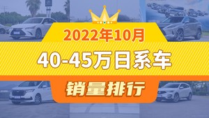2022年10月的乘用车销量数据已经出炉,据众车网汽车行业数据监测显示,10月国内乘用车市场销量达到126.4万辆,同比下降23.07%,环比下降13.66%。每月各个细分市场的销量排行榜,也成为了大家所关注的话题,今天众车网为大家带来了,2022年10月40-45万日系车的销量排行榜单,有哪些车型能跻身销量榜呢?下面我们直接看数据。