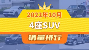 2022年10月的乘用车销量数据已经出炉,据众车网汽车行业数据监测显示,10月国内乘用车市场销量达到126.4万辆,同比下降23.07%,环比下降13.66%。每月各个细分市场的销量排行榜,也成为了大家所关注的话题,今天众车网为大家带来了,2022年10月4座SUV的销量排行榜单,有哪些车型能跻身销量榜呢?下面我们直接看数据。
