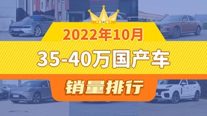 2022年10月的乘用车销量数据已经出炉,据众车网汽车行业数据监测显示,10月国内乘用车市场销量达到126.4万辆,同比下降23.07%,环比下降13.66%。每月各个细分市场的销量排行榜,也成为了大家所关注的话题,今天众车网为大家带来了,2022年10月35-40万国产车的销量排行榜单,有哪些车型能跻身销量榜呢?下面我们直接看数据。