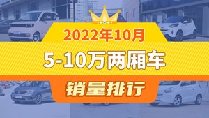 2022年10月5-10万两厢车销量排行榜,宏光MINI EV以38595辆夺冠
