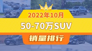 2022年10月的乘用车销量数据已经出炉,据众车网汽车行业数据监测显示,10月国内乘用车市场销量达到126.4万辆,同比下降23.07%,环比下降13.66%。每月各个细分市场的销量排行榜,也成为了大家所关注的话题,今天众车网为大家带来了,2022年10月50-70万SUV的销量排行榜单,有哪些车型能跻身销量榜呢?下面我们直接看数据。