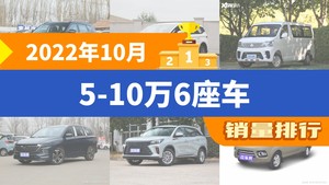 2022年10月的乘用车销量数据已经出炉,据众车网汽车行业数据监测显示,10月国内乘用车市场销量达到126.4万辆,同比下降23.07%,环比下降13.66%。每月各个细分市场的销量排行榜,也成为了大家所关注的话题,今天众车网为大家带来了,2022年10月5-10万6座车的销量排行榜单,有哪些车型能跻身销量榜呢?下面我们直接看数据。