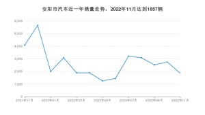 2022年11月,安阳市汽车总销量为1857辆,同比下降54.5%,环比下降32.33%。2021年11月-2022年11月份,安阳市总销量为34694辆,同比下降37.18%。在最近1年中,安阳市销量在2021年12月达到最高,销量为5648辆。
