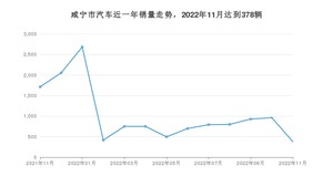 2022年11月,咸宁市汽车总销量为378辆,同比下降77.95%,环比下降60.75%。2021年11月-2022年11月份,咸宁市总销量为13432辆,同比下降37.79%。在最近1年中,咸宁市销量在2022年01月达到最高,销量为2684辆。