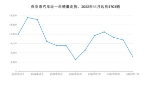 2022年11月,保定市汽车总销量为4703辆,同比下降60.74%,环比下降53.57%。2021年11月-2022年11月份,保定市总销量为133043辆,同比下降21.18%。在最近1年中,保定市销量在2021年12月达到最高,销量为17334辆。