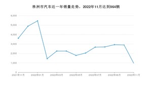 2022年11月,株洲市汽车总销量为964辆,同比下降73.29%,环比下降66.74%。2021年11月-2022年11月份,株洲市总销量为35866辆,同比下降27.36%。在最近1年中,株洲市销量在2022年01月达到最高,销量为5447辆。