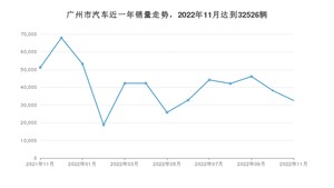 2022年11月,广州市汽车总销量为32526辆,同比下降36.43%,环比下降14.83%。2021年11月-2022年11月份,广州市总销量为537259辆,同比下降9.92%。在最近1年中,广州市销量在2021年12月达到最高,销量为67943辆。