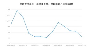 2022年11月,铁岭市汽车总销量为359辆,同比下降66.2%,环比下降44.43%。2021年11月-2022年11月份,铁岭市总销量为10158辆,同比下降34.36%。在最近1年中,铁岭市销量在2021年12月达到最高,销量为1752辆。