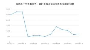 在国内市场上,北京,在2022年11月的销量为744辆,同比下降70.28%,环比增长9.41%。2021年11月-2022年11月份,北京累计销量为15884辆,较去年同期下降46.45%。