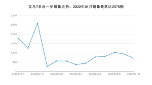 2022年11月,宝马7系销量为713辆,同比下降59.65%,环比下降23.82%。2021年11月-2022年11月份,宝马7系销量为12047辆,同比下降53.73%。