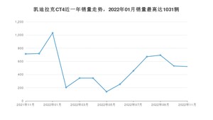 2022年11月,凯迪拉克CT4销量为522辆,同比下降26.79%,环比下降1.51%。2021年11月-2022年11月份,凯迪拉克CT4销量为6625辆,同比下降66.68%。
