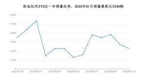 2022年11月,凯迪拉克XT5销量为2264辆,同比下降35.66%,环比下降16.58%。2021年11月-2022年11月份,凯迪拉克XT5销量为38196辆,同比下降36.68%。