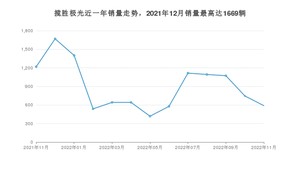 2022年11月,揽胜极光销量为589辆,同比下降51.64%,环比下降21.05%。2021年11月-2022年11月份,揽胜极光销量为11723辆,同比下降21.76%。