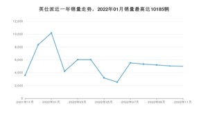 2022年11月,英仕派销量为4999辆,同比增长39.33%,环比下降0.99%。2021年11月-2022年11月份,英仕派销量为70244辆,同比增长21.12%。