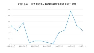 2022年11月,宝马2系销量为482辆,同比下降24.33%,环比下降26.41%。2021年11月-2022年11月份,宝马2系销量为5471辆,同比下降41.8%。