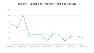 2022年11月,奥迪A5销量为367辆,同比下降65.15%,环比下降18.08%。2021年11月-2022年11月份,奥迪A5销量为7640辆,同比下降55.85%。