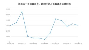 2022年11月,缤瑞销量为3020辆,同比增长0.03%,环比下降9.42%。2021年11月-2022年11月份,缤瑞销量为34029辆,同比下降53.05%。