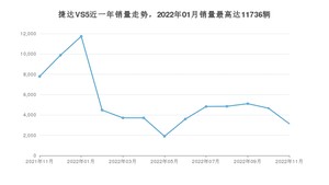2022年11月,捷达VS5销量为3128辆,同比下降59.84%,环比下降32.85%。2021年11月-2022年11月份,捷达VS5销量为69336辆,同比下降18.57%。