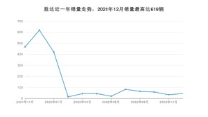 2022年11月,胜达销量为44辆,同比下降90.6%,环比增长33.33%。2021年11月-2022年11月份,胜达销量为1909辆,同比下降82.06%。