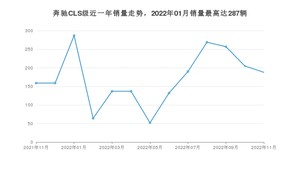 2022年11月,奔驰CLS级销量为188辆,同比增长18.24%,环比下降8.29%。2021年11月-2022年11月份,奔驰CLS级销量为2236辆,同比下降59.22%。