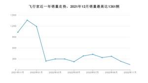 2022年11月,飞行家销量为139辆,同比下降86.52%,环比下降40.34%。2021年11月-2022年11月份,飞行家销量为6519辆,同比下降56.59%。