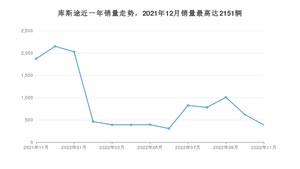 2022年11月,库斯途销量为385辆,同比下降79.42%,环比下降37.7%。2021年11月-2022年11月份,库斯途销量为11594辆,同比增长246.09%。