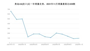 2022年11月,奥迪A6(进口)销量为96辆,同比下降85.41%,环比增长7.87%。2021年11月-2022年11月份,奥迪A6(进口)销量为3093辆,同比下降58.53%。