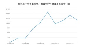 2022年11月,威飒销量为1397辆,环比下降17.97%。2021年11月-2022年11月份,威飒销量为10136辆,