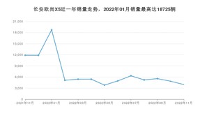 2022年11月,长安欧尚X5销量为3962辆,同比下降66.66%,环比下降18.54%。2021年11月-2022年11月份,长安欧尚X5销量为93103辆,同比下降25.86%。