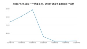 2022年11月,捷途X70 PLUS销量为113辆,同比下降97.65%,环比增长769.23%。2021年11月-2022年11月份,捷途X70 PLUS销量为20005辆,同比下降73.24%。